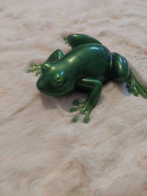 Grenouille verte . 10 cm en longueur, 13 cm en largeur au niveau de pattes arrière et 10 cm de largeur au niveau des pattes avant